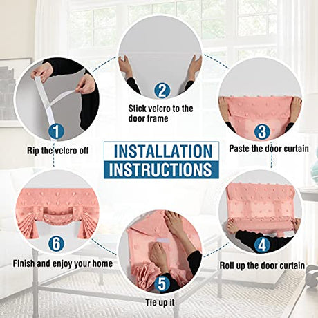 Linen Blended French Door Curtain Light Filtering French Door Blinds Privacy Tricia Window Covering Shade for Patio Door/Sidelight Door Tie Up Door Curtain, 26 x 68 Inch, 1 Panel, Pompom - Coral Pink