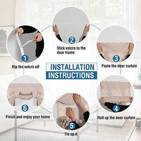 Linen Blended French Door Curtain Light Filtering French Door Blinds Privacy Tricia Window Covering Shade for Patio Door/Sidelight Door Tie Up Door Curtain, 26 x 68 Inch, 1 Panel, Pompom - Linen