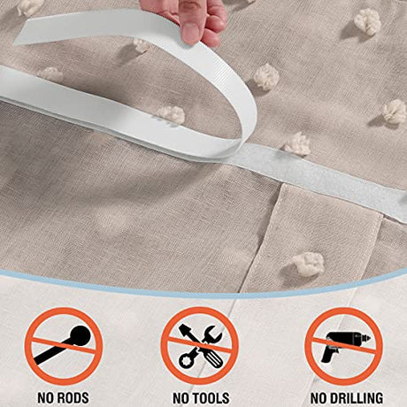 Linen Blended French Door Curtain Light Filtering French Door Blinds Privacy Tricia Window Covering Shade for Patio Door/Sidelight Door Tie Up Door Curtain, 26 x 68 Inch, 2 Panel, Pompom - Linen