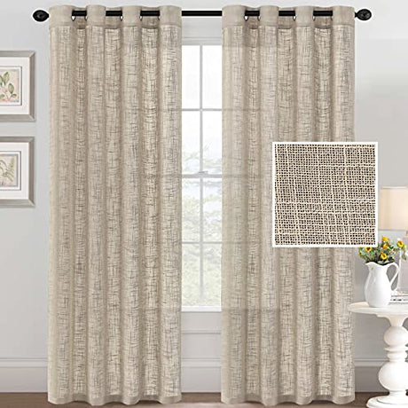 Linen Curtains Natural Linen Blended Curtains for Living Room Burlap Linen Textured Curtains Light Filtering Nickel Grommet Curtains Bedroom Curtains 2 Panel Sets Privacy Added, 52" x 84", Natural
