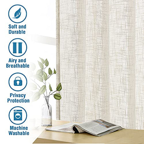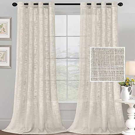 Linen Curtains Natural Linen Blended Curtains for Living Room Burlap Linen Textured Curtains Light Filtering Nickel Grommet Curtains Bedroom Curtains 2 Panel Sets Privacy Added, 52" x 108", Ivory