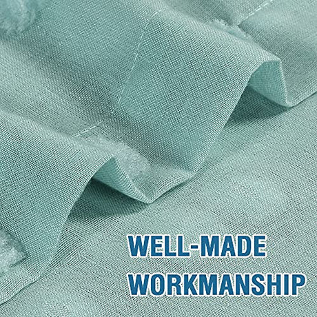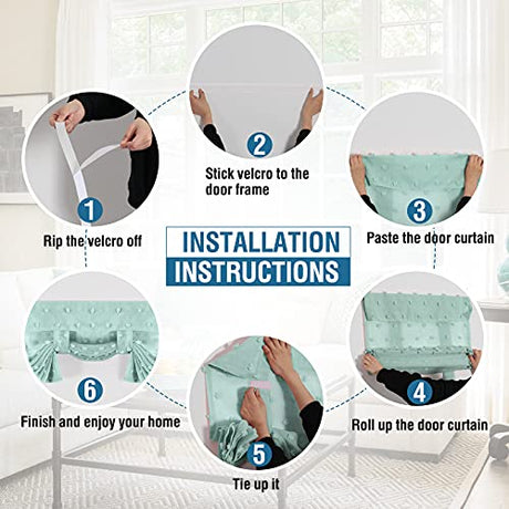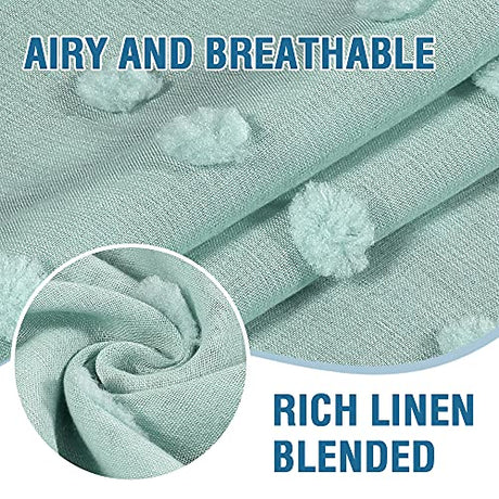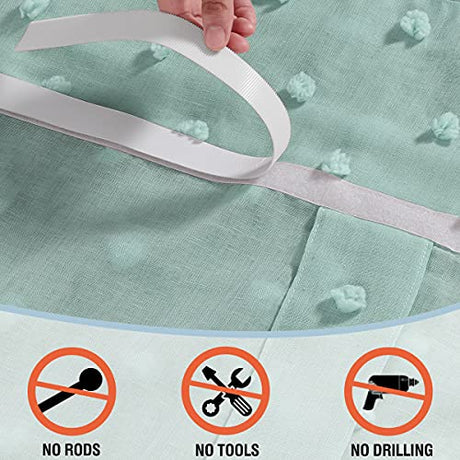 Linen Blended French Door Curtain Light Filtering French Door Blinds Privacy Tricia Window Covering Shade for Patio Door/Sidelight Door Tie Up Door Curtain, 26 x 68 Inch, 2 Panel, Pompom - Sea Mist
