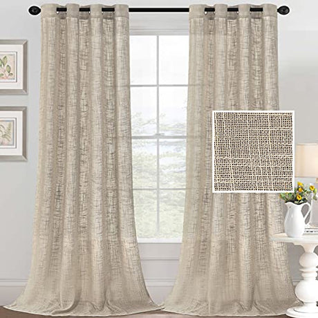 Linen Curtains Natural Linen Blended Curtains for Living Room Burlap Linen Textured Curtains Light Filtering Nickel Grommet Curtains Bedroom Curtains 2 Panel Sets Privacy Added, 52" x 108", Natural