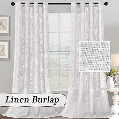 Linen Curtains Natural Linen Blended Curtains for Living Room Burlap Linen Textured Curtains Light Filtering Nickel Grommet Curtains Bedroom Curtains 2 Panel Sets Privacy Added, 52" x 108", White
