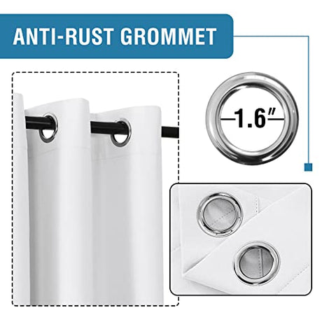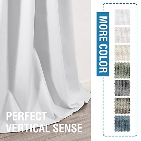100% Blackout Linen Curtains 84 inches Long Thermal Curtains for Living Room Textured Burlap Curtains with Double Face Linen Grommet Soundproof Bedroom Curtains 52 x 84 Inch, 2 Panels - White