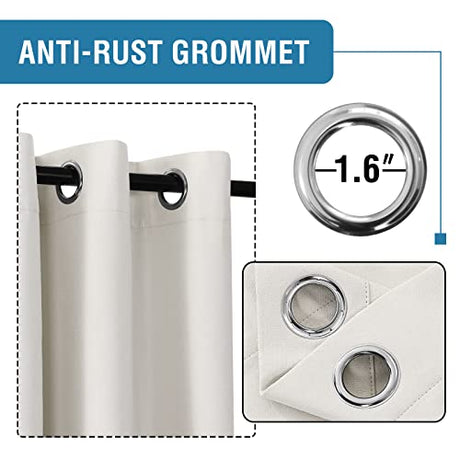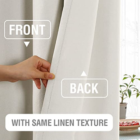 100% Blackout Linen Curtains 96 inches Long Thermal Curtains for Living Room Textured Burlap Curtains with Double Face Linen Grommet Soundproof Bedroom Curtains 52 x 96 Inch, 2 Panels - Ivory