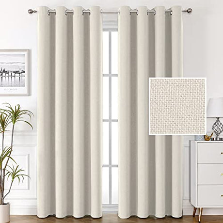 100% Blackout Linen Curtains 84 inches Long Thermal Curtains for Living Room Textured Burlap Curtains with Double Face Linen Grommet Soundproof Bedroom Curtains 52 x 84 Inch, 2 Panels - Ivory