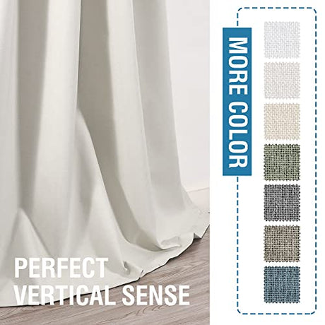 100% Blackout Linen Curtains 96 inches Long Thermal Curtains for Living Room Textured Burlap Curtains with Double Face Linen Grommet Soundproof Bedroom Curtains 52 x 96 Inch, 2 Panels - Off White