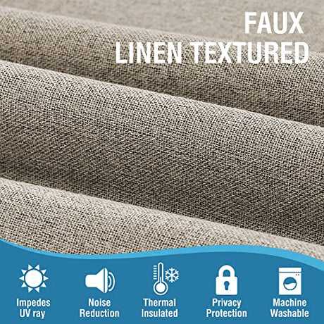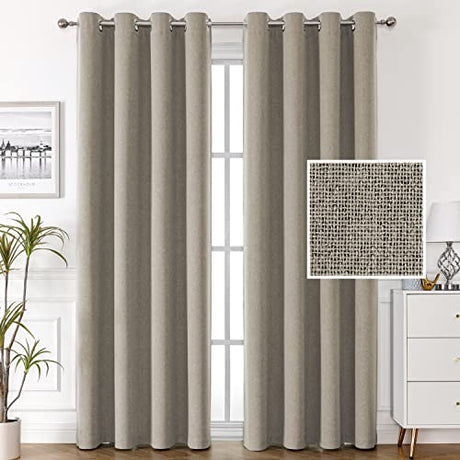 100% Blackout Linen Curtains 84 inches Long Thermal Curtains for Living Room Textured Burlap Curtains with Double Face Linen Grommet Soundproof Bedroom Curtains 52 x 84 Inch, 2 Panels - Taupe