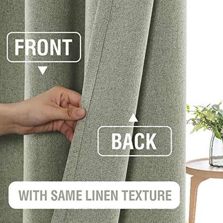 100% Blackout Linen Curtains 84 inches Long Thermal Curtains for Living Room Textured Burlap Curtains with Double Face Linen Grommet Soundproof Bedroom Curtains 52 x 84 Inch, 2 Panels - Sage