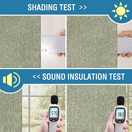 100% Blackout Linen Curtains 96 inches Long Thermal Curtains for Living Room Textured Burlap Curtains with Double Face Linen Grommet Soundproof Bedroom Curtains 52 x 96 Inch, 2 Panels - Sage