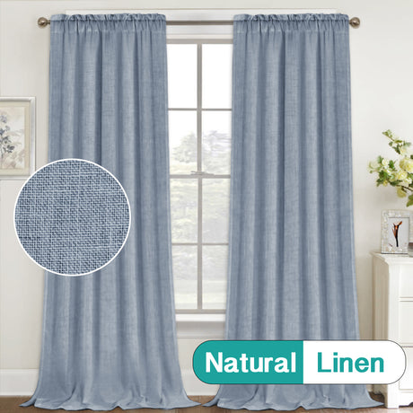 Primitive Linen Curtains 100% Blackout Curtain Drapes Burlap Fabric Curtains with White Thermal Insulated Liner, Grommet Top Curtains Living Room/Bedroom (2 Panels, 42 x 84 Inch, Stone Blue)