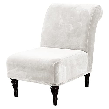 Velvet Accent Chair Covers High Stretch Armless Chair Covers for Living Room Luxury Thick Velvet Chair Slipcovers Modern Furniture Protector with Elastic Bottom, Machine Washable, Off White