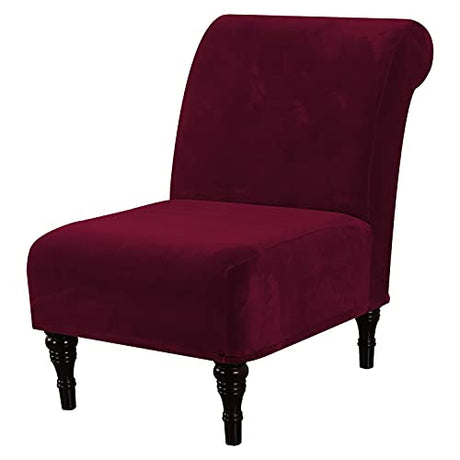 Velvet Accent Chair Covers High Stretch Armless Chair Covers for Living Room Luxury Thick Velvet Chair Slipcovers Modern Furniture Protector with Elastic Bottom, Machine Washable, Burgundy