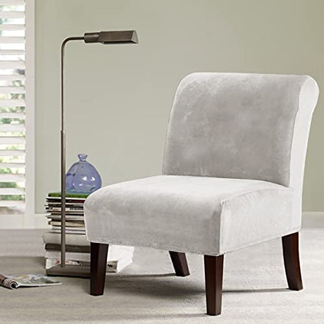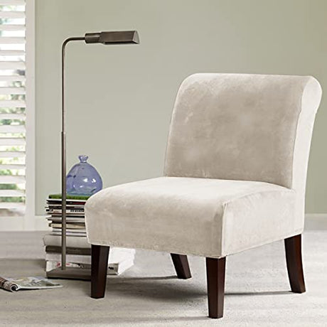 Velvet Accent Chair Covers High Stretch Armless Chair Covers for Living Room Luxury Thick Velvet Chair Slipcovers Modern Furniture Protector with Elastic Bottom, Machine Washable, Ivory