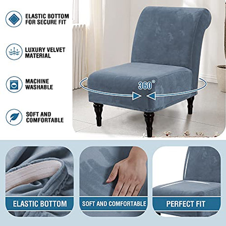 Velvet Accent Chair Covers High Stretch Armless Chair Covers for Living Room Luxury Thick Velvet Chair Slipcovers Modern Furniture Protector with Elastic Bottom, Machine Washable, Stone Blue