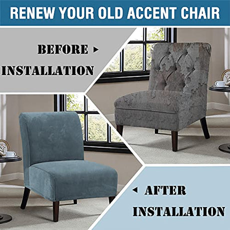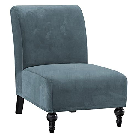 Armless Chair Slipcover Thick Striped Velvet Accent Chair Cover for Living Room High Stretch Slipper Chair Slipcover Removable Furniture Protector with Elastic Bottom, Machine Washable, Stone Blue
