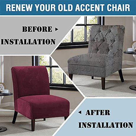 Armless Chair Slipcover Thick Striped Velvet Accent Chair Cover for Living Room High Stretch Slipper Chair Slipcover Removable Furniture Protector with Elastic Bottom, Machine Washable, Burgundy