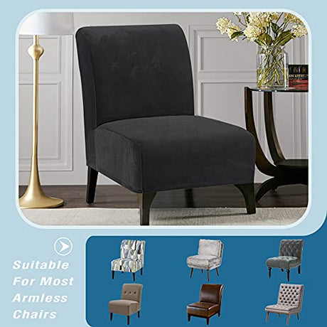 Armless Chair Slipcover Thick Striped Velvet Accent Chair Cover for Living Room High Stretch Slipper Chair Slipcover Removable Furniture Protector with Elastic Bottom, Machine Washable, Grey