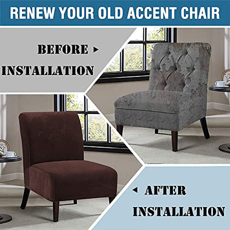 Armless Chair Slipcover Thick Striped Velvet Accent Chair Cover for Living Room High Stretch Slipper Chair Slipcover Removable Furniture Protector with Elastic Bottom, Machine Washable, Chocolate
