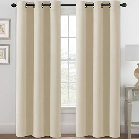 Blackout Curtains for Bedroom Thermal Insulated Room Darkening Living Room Curtains 84 Inch Long Grommet Privacy Protection Window Curtain Panels/Drapes for Nursery, 2 Panels, Elegant Beige