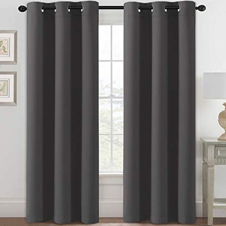 Blackout Curtains for Bedroom Thermal Insulated Room Darkening Living Room Curtains 84 Inch Long Grommet Privacy Protection Window Curtain Panels/Drapes for Nursery, 2 Panels, Charcoal Grey