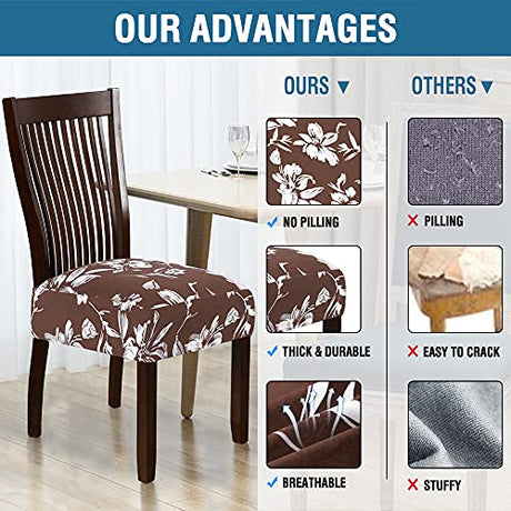 Chair Cover for Dining Room High Stretch Chair Seat Cover Removable Chair Seat Cushion Slipcovers Washable Kitchen Chair Cover Feature Soft Thick Bouncy Modern Style ( Chocolate, Set of 4 )