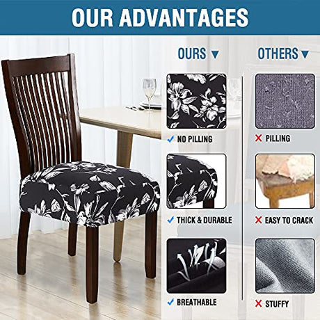 Chair Cover for Dining Room High Stretch Chair Seat Cover Removable Chair Seat Cushion Slipcovers Washable Kitchen Chair Cover Feature Soft Thick Bouncy Modern Style ( Black, Set of 6 )
