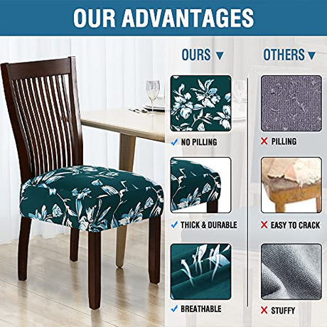 Chair Cover for Dining Room High Stretch Chair Seat Cover Removable Chair Seat Cushion Slipcovers Washable Kitchen Chair Cover Feature Soft Thick Bouncy Modern Style ( Dark Teal, Set of 6 )