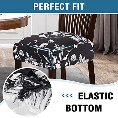 Chair Cover for Dining Room High Stretch Chair Seat Cover Removable Chair Seat Cushion Slipcovers Washable Kitchen Chair Cover Feature Soft Thick Bouncy Modern Style ( Black, Set of 4 )