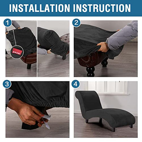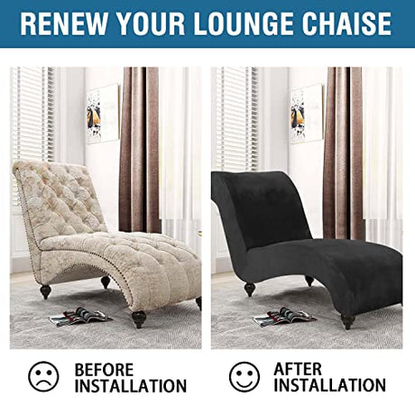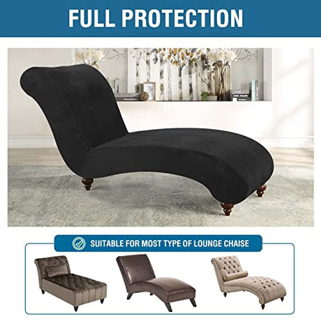 Chaise Lounge Cover Velvet Chaise Lounge Couch Cover High Stretch Chaise Lounge Slipcover Luxury Lounge Chair Cover for Living Room Soft Furniture Protector for Dog, Machine Washable, Black