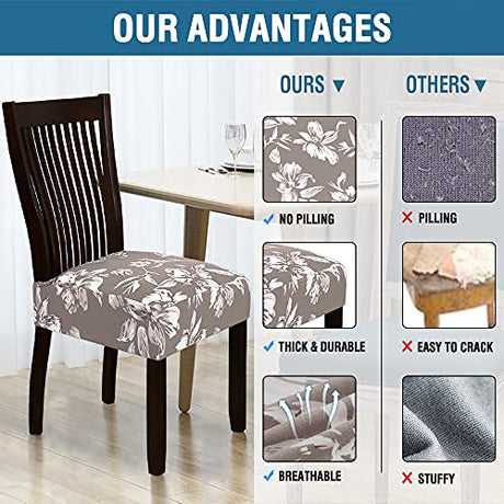 Chair Cover for Dining Room High Stretch Chair Seat Cover Removable Chair Seat Cushion Slipcovers Washable Kitchen Chair Cover Feature Soft Thick Bouncy Modern Style ( Taupe, Set of 6 )