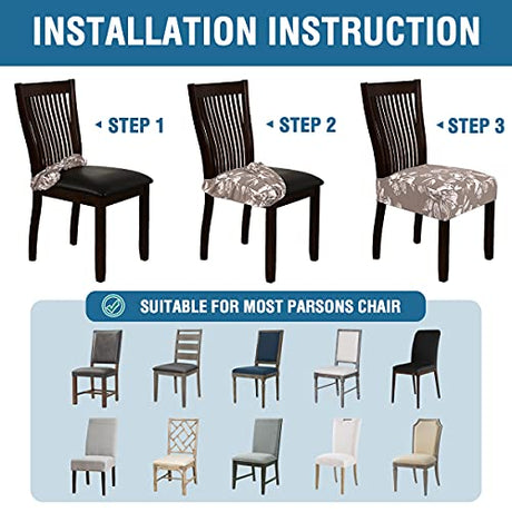 Chair Cover for Dining Room High Stretch Chair Seat Cover Removable Chair Seat Cushion Slipcovers Washable Kitchen Chair Cover Feature Soft Thick Bouncy Modern Style ( Taupe, Set of 4 )