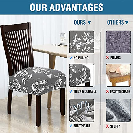 Chair Cover for Dining Room High Stretch Chair Seat Cover Removable Chair Seat Cushion Slipcovers Washable Kitchen Chair Cover Feature Soft Thick Bouncy Modern Style ( Grey, Set of 4 )