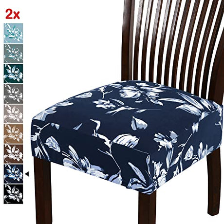 Chair Cover for Dining Room High Stretch Chair Seat Cover Removable Chair Seat Cushion Slipcovers Washable Kitchen Chair Cover Feature Soft Thick Bouncy Modern Style ( Navy, Set of 2 )