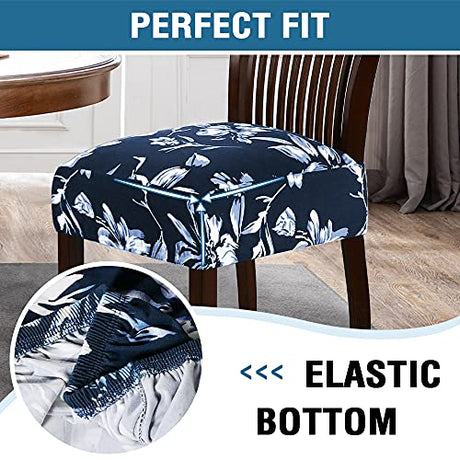 Chair Cover for Dining Room High Stretch Chair Seat Cover Removable Chair Seat Cushion Slipcovers Washable Kitchen Chair Cover Feature Soft Thick Bouncy Modern Style ( Navy, Set of 4 )