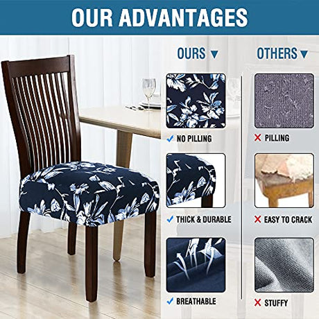 Chair Cover for Dining Room High Stretch Chair Seat Cover Removable Chair Seat Cushion Slipcovers Washable Kitchen Chair Cover Feature Soft Thick Bouncy Modern Style ( Navy, Set of 6 )