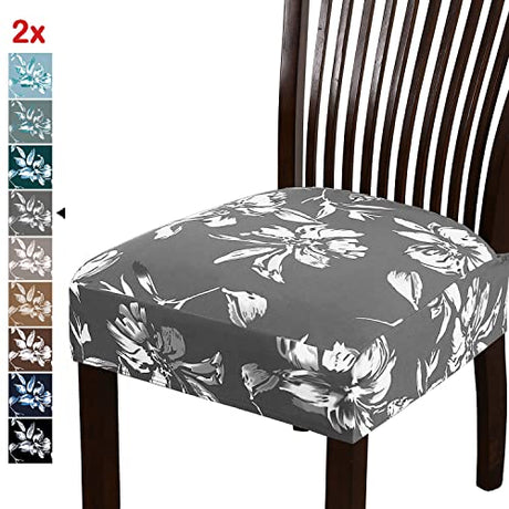 Chair Cover for Dining Room High Stretch Chair Seat Cover Removable Chair Seat Cushion Slipcovers Washable Kitchen Chair Cover Feature Soft Thick Bouncy Modern Style ( Grey, Set of 2 )