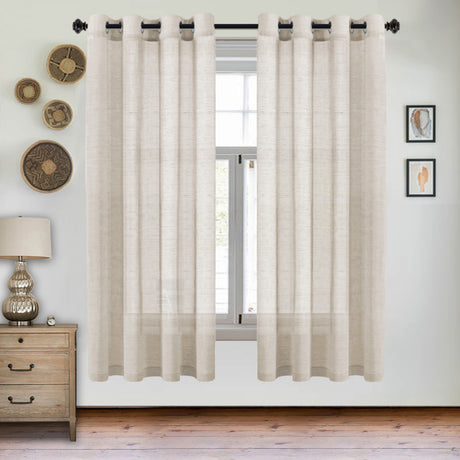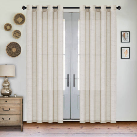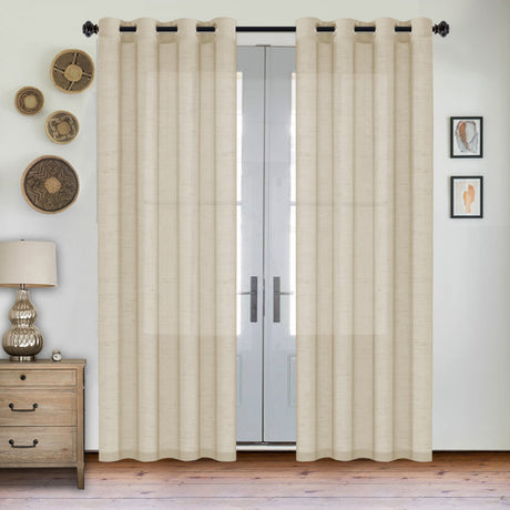Grommet Semi Sheer Linen Draperies W52“ x L108" Set of 2 Panels