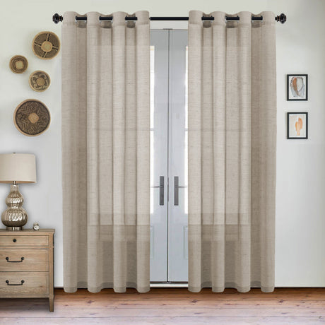 Grommet Semi Sheer Linen Draperies W52“ x L96" Set of 2 Panels