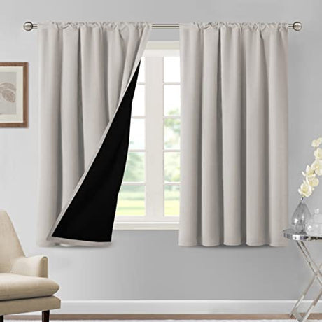 H.VERSAILTEX 100% Blackout Curtains for Bedroom Thermal Insulated Curtains & Drapes Blackout Curtains 54 Inches Long Rod Pocket Curtains for Living Room with Black Liner 2 Panels Set, Bleached White