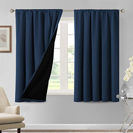H.VERSAILTEX 100% Blackout Curtains for Bedroom Thermal Insulated Curtains & Drapes Blackout Curtains 54 Inches Long Rod Pocket Curtains for Living Room with Black Liner 2 Panels Set, Navy