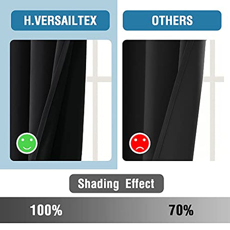 H.VERSAILTEX 100% Blackout Curtains for Bedroom Thermal Insulated Curtains & Drapes Blackout Curtains 54 Inches Long Rod Pocket Curtains for Living Room with Black Liner 2 Panels Set, Jet Black