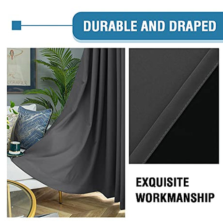 H.VERSAILTEX 100% Blackout Curtains for Bedroom Thermal Insulated Curtains & Drapes Blackout Curtains 54 Inches Long Rod Pocket Curtains for Living Room with Black Liner 2 Panels Set, Charcoal Gray