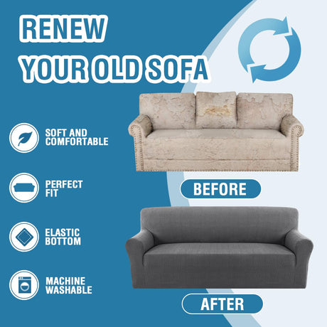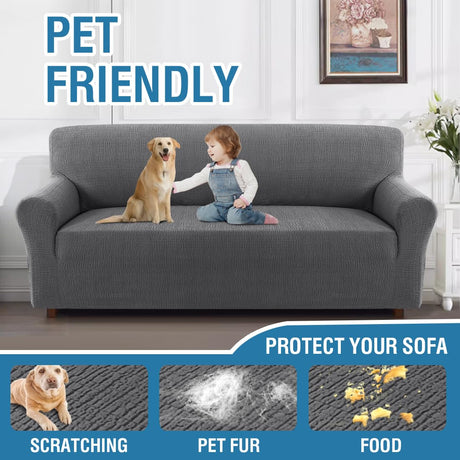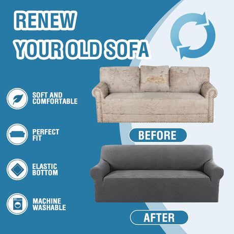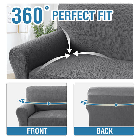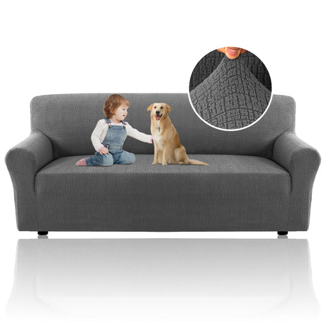 H.VERSAILTEX 2024 Newest Jacquard Couch Covers for 3 Cushion Couch 1 Piece Stretch Sofa Covers Furniture Protector Anti-Slip Soft Thickened Dogs Slipcovers Washable Crizzle Pattern(Sofa, Grey)