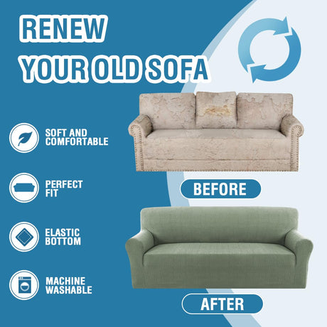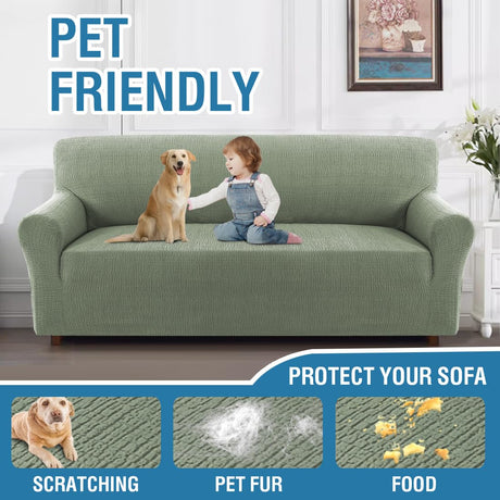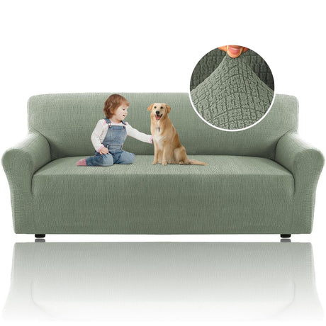 H.VERSAILTEX 2024 Newest Jacquard Couch Covers for 3 Cushion Couch 1 Piece Stretch Sofa Covers Furniture Protector Anti-Slip Soft Thickened Dogs Slipcovers Washable Crizzle Pattern(Sofa, Sea Grass)