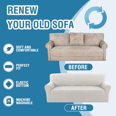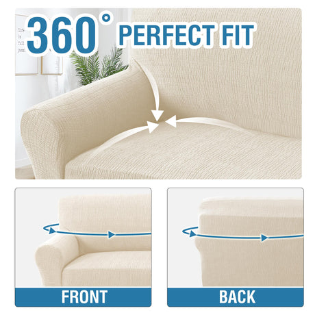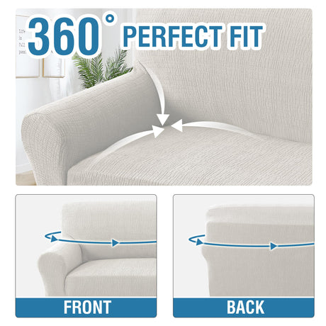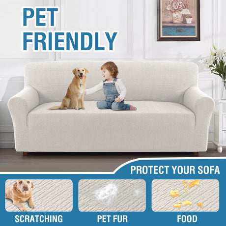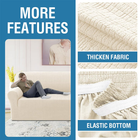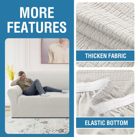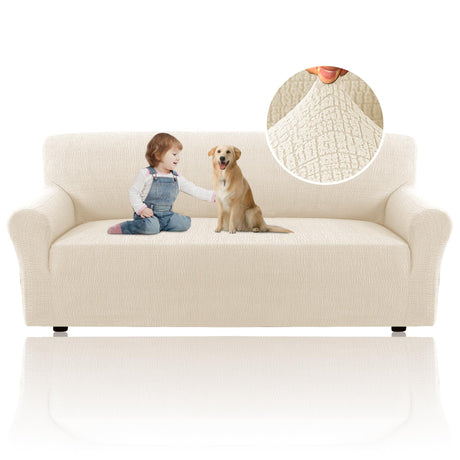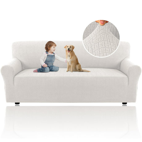H.VERSAILTEX 2024 Newest Jacquard Couch Covers for 3 Cushion Couch 1 Piece Stretch Sofa Covers Furniture Protector Anti-Slip Soft Thickened Dogs Slipcovers Washable Crizzle Pattern(Sofa, Ivory)