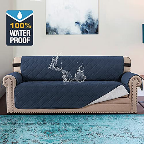H.VERSAILTEX 100% Waterproof Sofa Cover Protector Couch Covers for Dogs/Pets | Sofa Slipcover for 3 Cushion Couch with Non Slip Backing and Adjustable Strap (Seat Width 78", Navy)