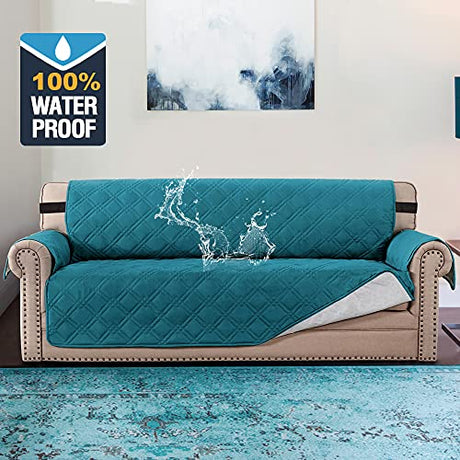 H.VERSAILTEX 100% Waterproof Sofa Cover Protector Couch Covers for Dogs/Pets | Sofa Slipcover for 3 Cushion Couch with Non Slip Backing and Adjustable Strap (Seat Width 78", Dark Teal)