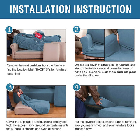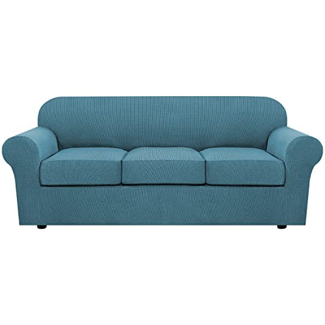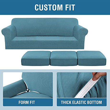 H.VERSAILTEX 4 Piece Stretch Sofa Covers for 3 Cushion Couch Covers for Living Room Furniture Slipcovers (Base Cover Plus 3 Seat Cushion Covers) Upgraded Thicker Jacquard Fabric (Sofa, Storm Blue)